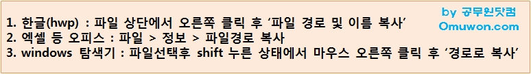 ② 엑셀 등 오피스 : 파일 > 정보 > 파일경로 복사