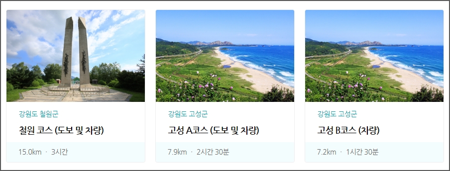 평화의길은 철원구간, 고성구간이 있습니다. 고성구간은 고성A코스와 고성B코스가 있습니다. 가고 싶은 코스를 미리 확인해보세요.