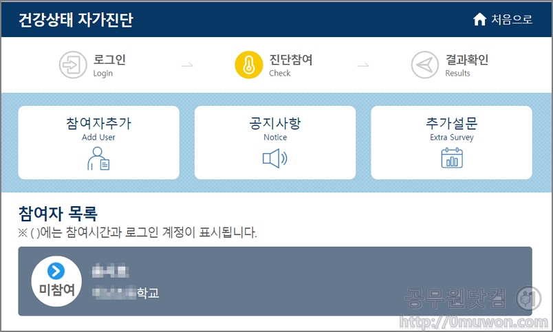 컴퓨터에서 하는 방법입니다. 로그인이 안되거나, 앱을 삭제했다가 다시설치하는 경우 등 건강상태 자가진단과 관련해서 자주하는 질문과 답변도 같이 보면 도움이 됩니다. ▼ 건강상태 자가진단 로그인 안될 때?? 자주하는 질문과 답변 15가지