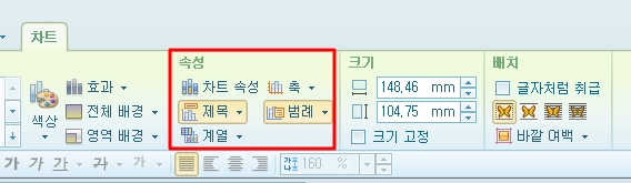 만들어진 차트가 마음에 들지 않는다면 엑셀처럼 다양한 형태로 꾸밀 수 있습니다. 차트를 클릭하면 한글 상단메뉴에 '차트' 메뉴가 생성이 됩니다.