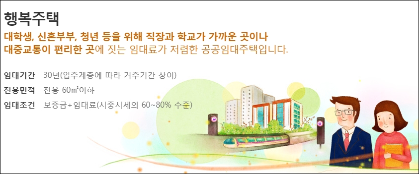 행복주택을 아시나요? 다양한 종류의 주거혜택을 지원이 있습니다.
