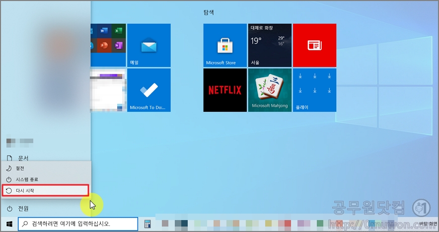 그러면, 절전모드로 끄지 않고 완전히 끄는 법을 알아보겠습니다. 1주일에 한두번 제대로 끄면 노트북 오류도 적게 발생한다고 하니 제대로 전원 끄는 법을 알아두었다가 사용해 보시기 바랍니다. 방법은 간단합니다.