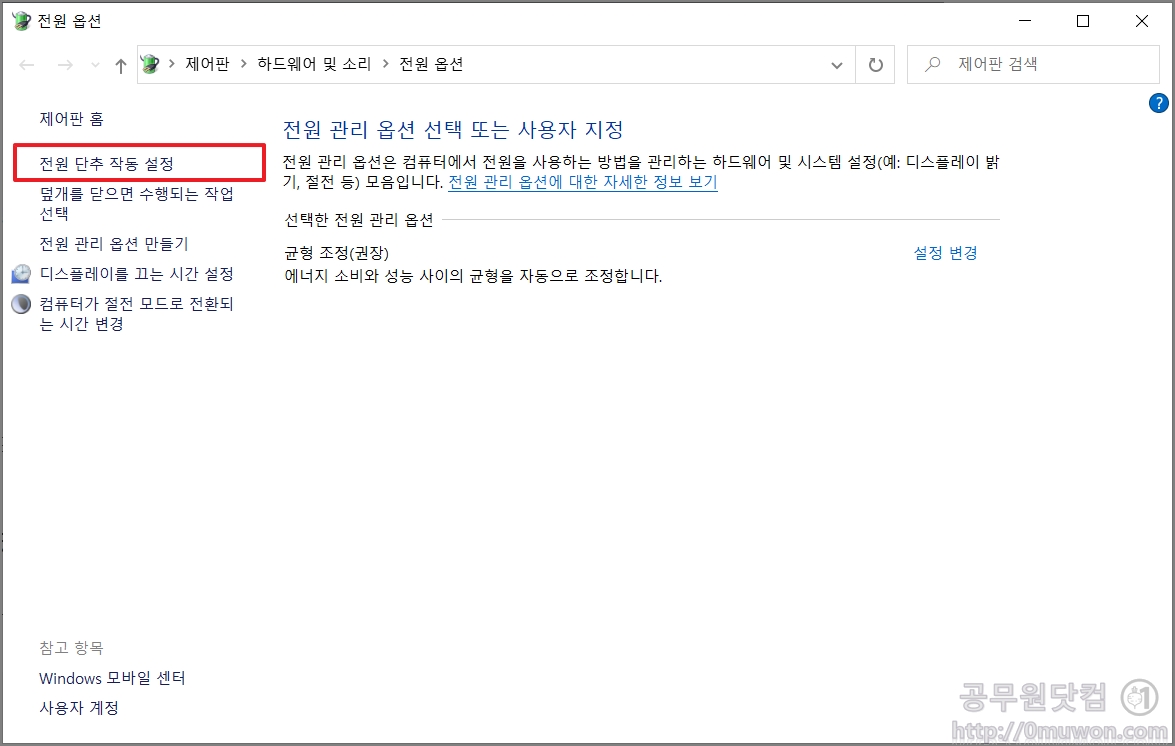 3. 전원 옵션 설정 변경하기