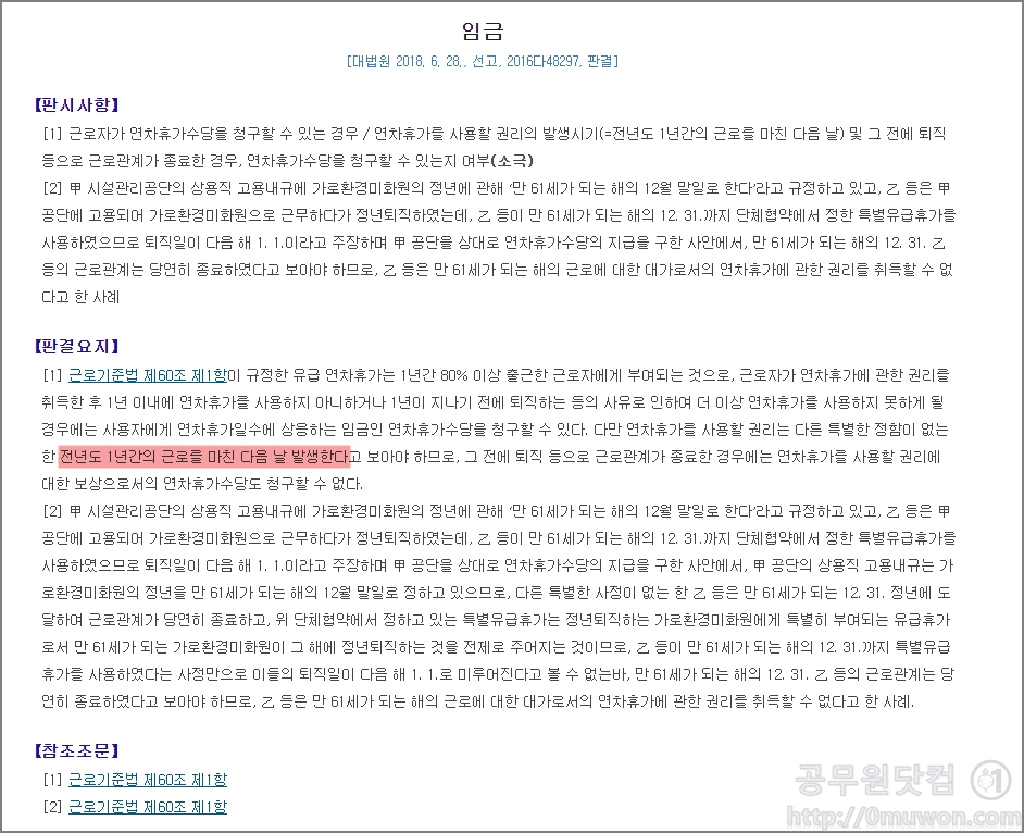 1. 근로기준법 제60조(연차 유급휴가)