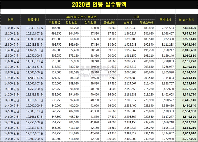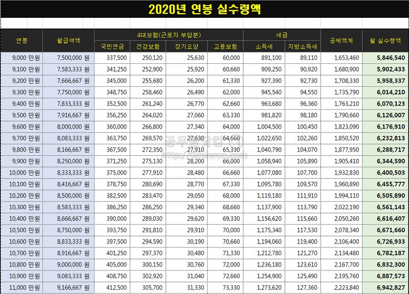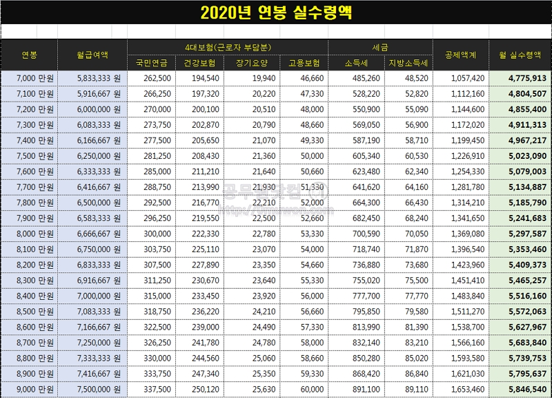 실 수령액을 계산해 보았습니다. 2020년에는 부자되시기를 바랍니다.