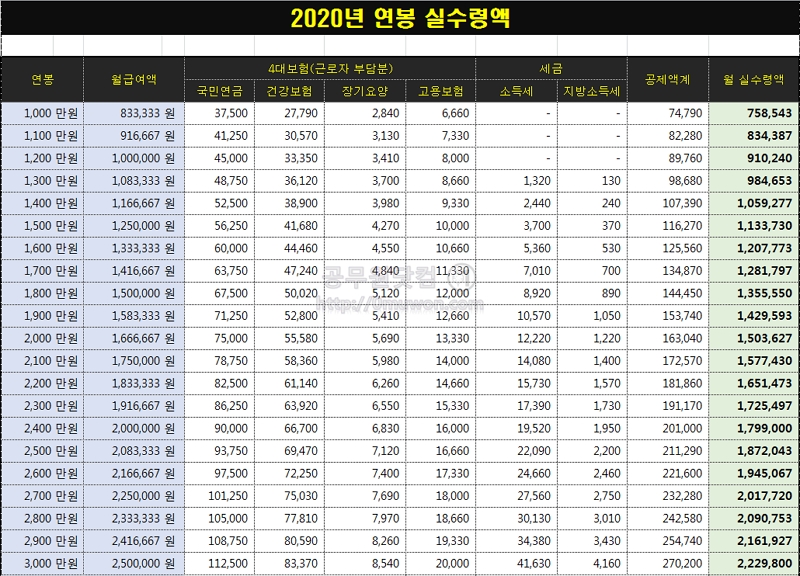 실 수령액을 계산해 보았습니다. 2020년에는 부자되시기를 바랍니다.