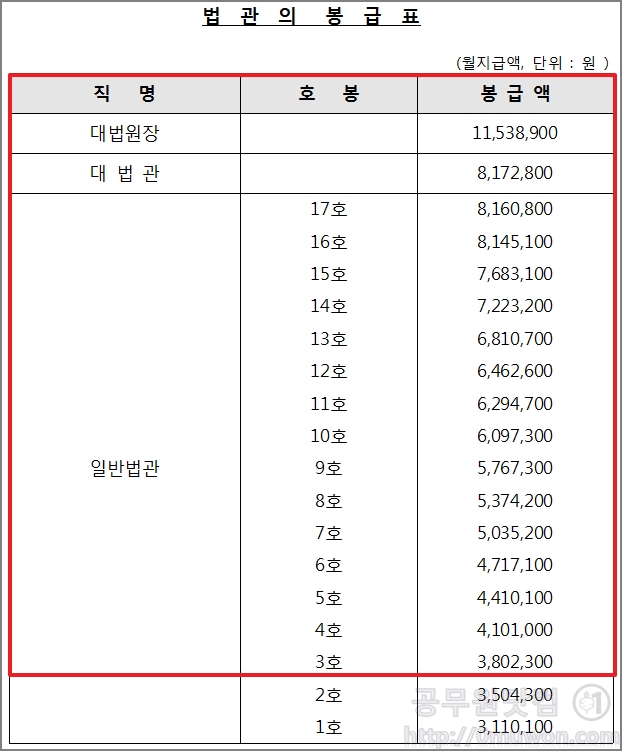 1. 2020년 법관의 봉급표