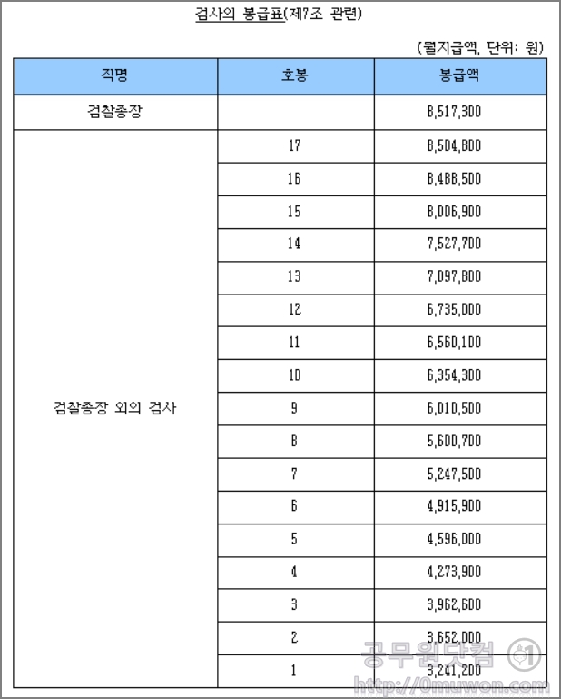 위에서 이야기 했듯이 검사의 호봉은 17호봉까지 있습니다. 일반직공무원이 32~33호봉까지 있는거와는 차이가 있습니다. 보통 1호봉은 1년을 의미하는데, 검사의 1호봉은 1년이 아닙니다.