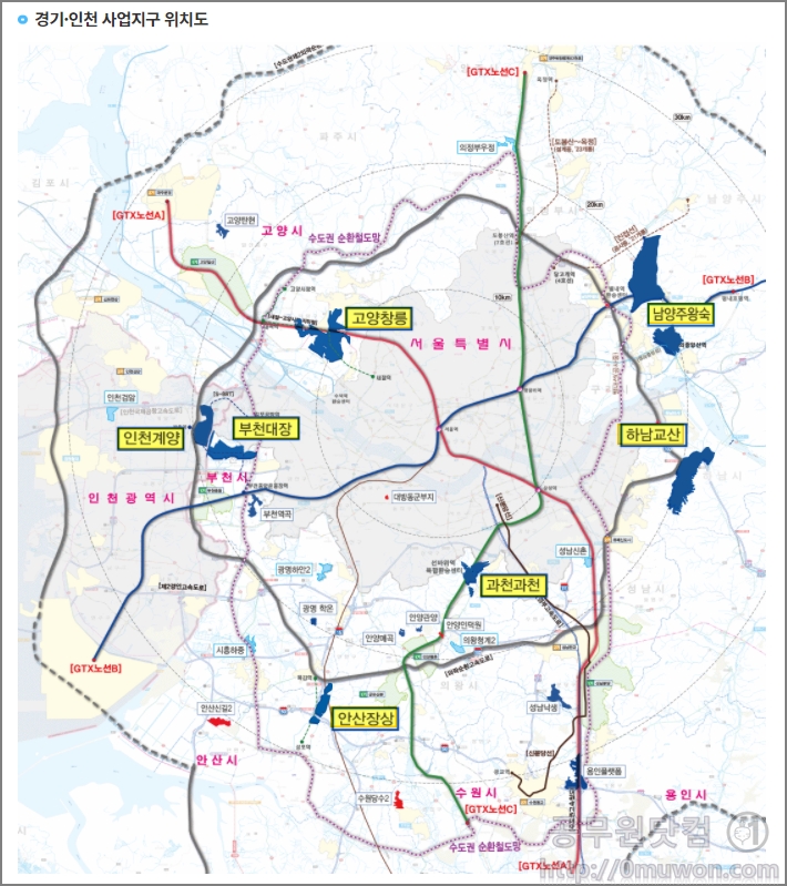 인천계양 신도시는 정보통신, 컨텐츠 산업 중심의 도시첨단산업단지와 주변지역이 함께 성장하는 일자리 중심도시로 조성됩니다. 고양창릉 신도시는 교통이 편리하고, 일자리가 풍부한 수도권 서북부 일자리 거점도시, 창릉천과 도시숲이 있는 자연친화적인 도시로 조성됩니다.