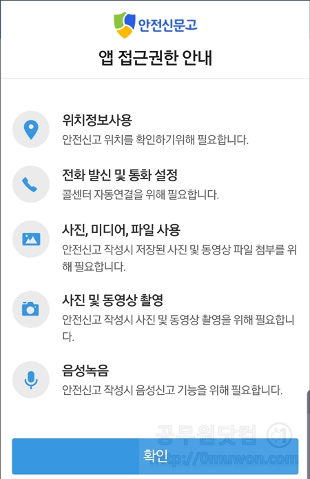 ▼ 앱 접근권한을 허용합니다. 정상적으로 사용을 하기 위해서는 앱접근 권한을 허용해야합니다. 확인을 눌러주세요.