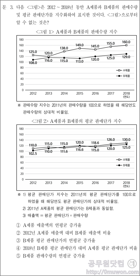 예시 문제에서도 보듯이 자료해석영역은 표와 그래프를 보고 해석하는 능력이 있어야 합니다. 보도자료 등을 많이 보면 도움이 되지 않을까 합니다.