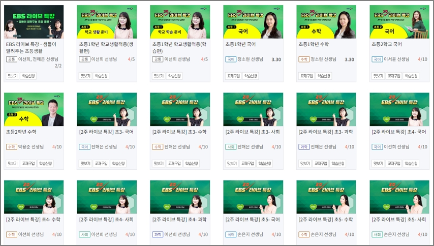 초등학교 2학년의 경우도 EBS 플러스2 채널에서 특강을 진행합니다. 아침 9시 30분부터 11시까지 수업을 합니다. 국어와 수학 수업을 2주간 온라인으로 수업을 합니다. 이서윤 선생님, 박용준 선생님이 특강을 합니다.