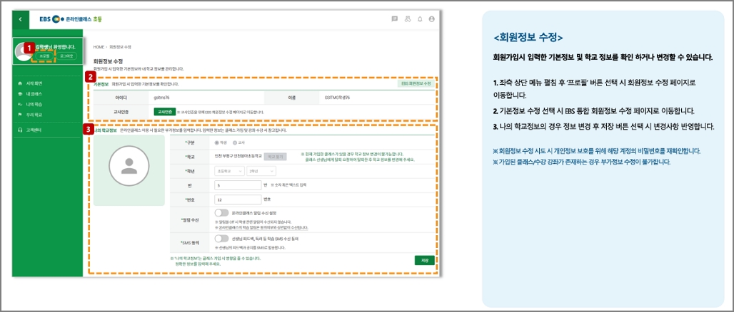 3. 학년, 반, 번호를 잘못 입력했는데 수정이 가능할까요?