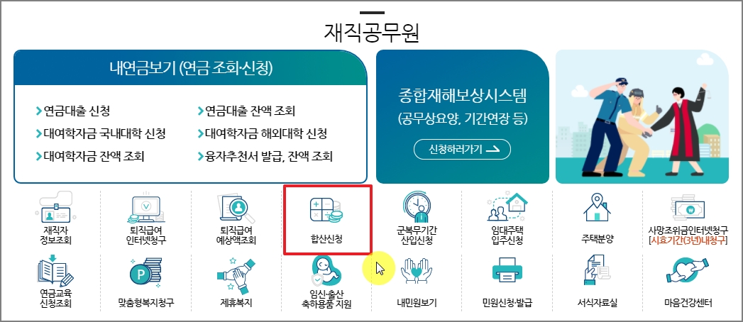 공무원 재직기간 합산은 공무원 재직중에만 신청이 가능합니다. 퇴직인 이전 인터넷 신청 또는 합산신청서를 우편팩스로 공무원연금공단에 발송해야 합니다. 우편은 퇴직일 전날 소인까지 유효합니다. 합산신청을 받으려는 분들은 꼭 공무원재직기간 중에 합산신청을 하시기 바랍니다.