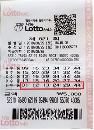 로또 1등 거래내역 확인증입니다.