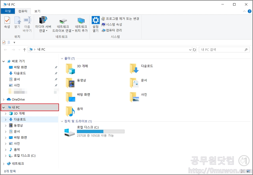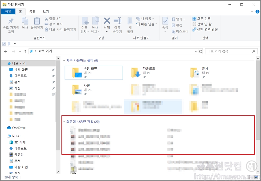 윈도우10 파일 탐색기 사용 시 참고하시기 바랍니다.