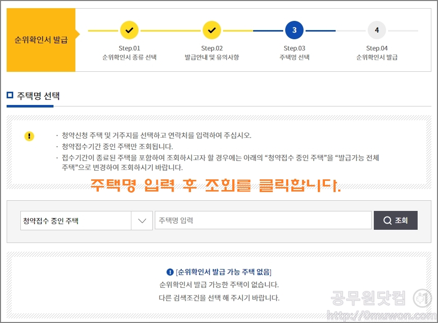 ▼ 내역을 확인 후 순위확인서를 발급받으면 됩니다.