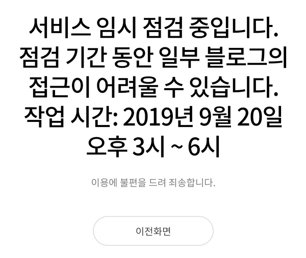 2019년 9월 20일 오후 3시부터 6시까지 블로그 서비스 임시 점검이 있었습니다.